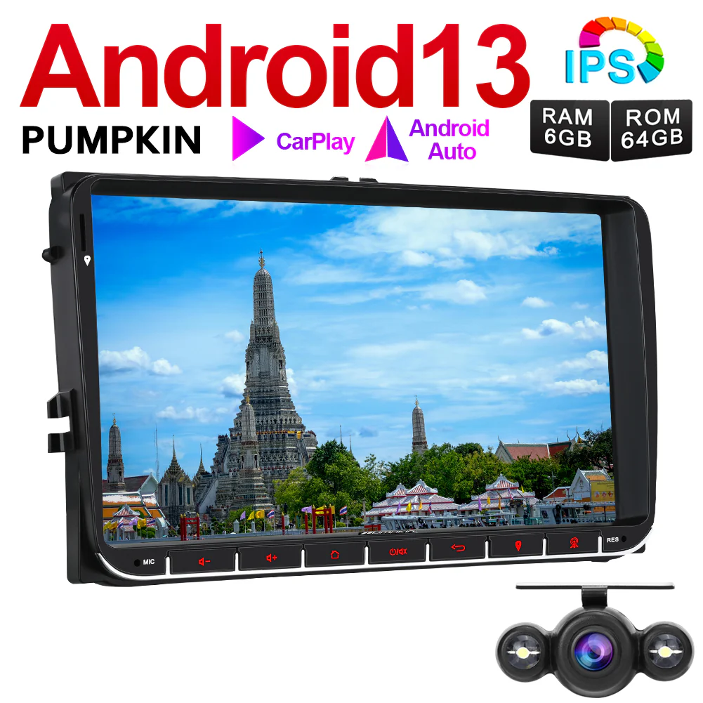 Pumpkin 9 Zoll 2 Din VW Golf 5 Golf 6 Passat Polo T5 Android 13 Autoradio mit Bluetooth Navi Android Auto Kamera(4GB+64GB)